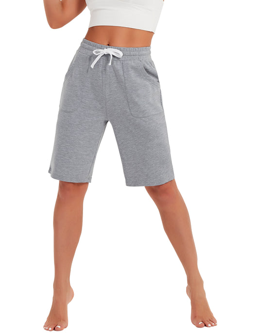 SPECIALMAGIC Cotton Sweat Shorts with Pockets for Women 10" Athletic Lounge Sports Workout Bermuda Knee Shorts
