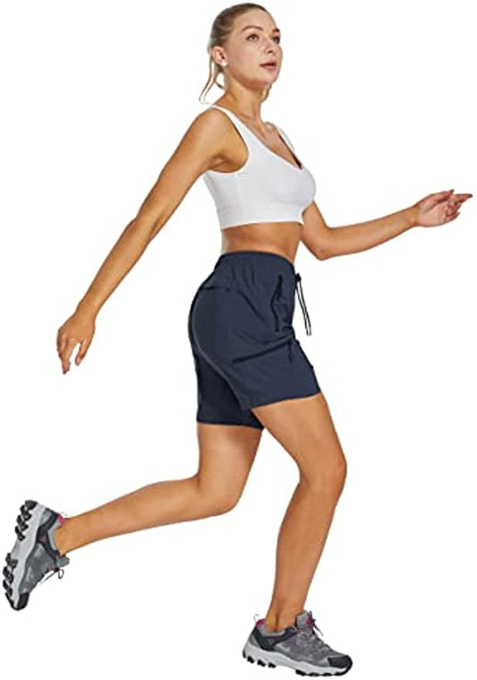 Womens Hiking Shorts Quick Dry with Pockets Cargo, Womens Workout Shorts Lightweight High Waisted Long Running Gym Fishing Shorts Pull on Casual Navy Blue